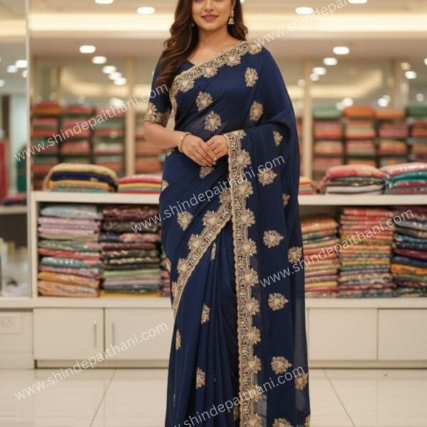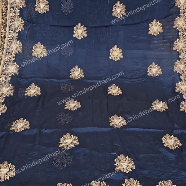 Traditional Navy Blue Designer Saree with Gold Embroidered Border, Floral Pattern Design, Ethnic Indian Wedding Wear, Embellished Border Code – 11005