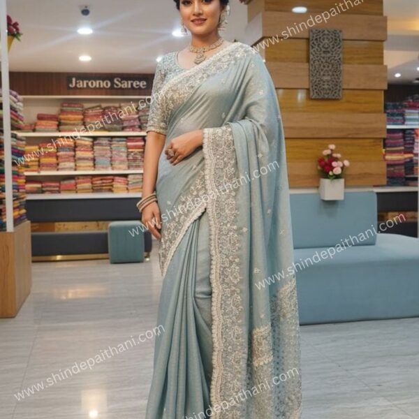 Designer Grey Silk Embroidered Wedding,Party Wear Saree with Blouse, Traditional Indian Ethnic Wear