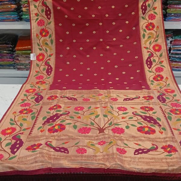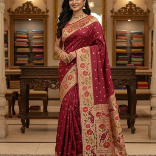 Traditional Maroon Pure Silk Saree with Floral Jari Work Border, Powerloom Weave Code – 11056