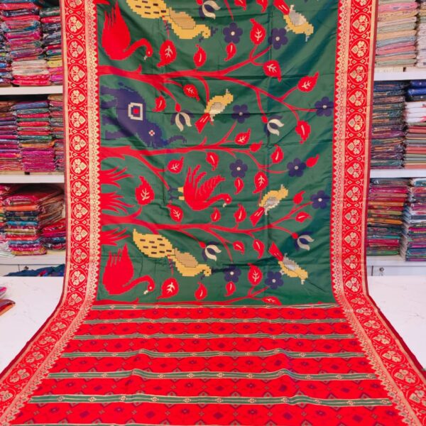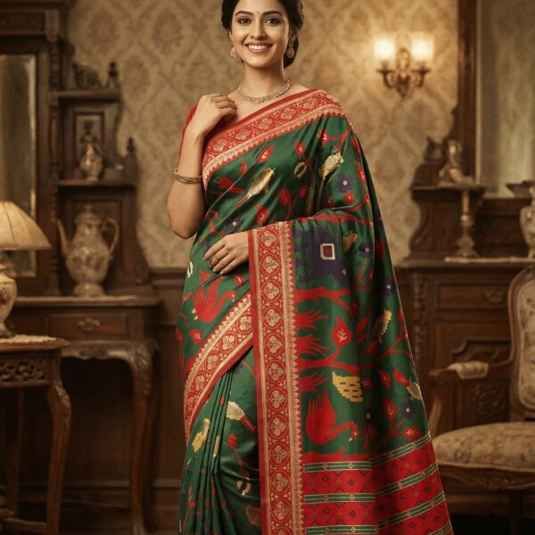 Green Patola Silk Saree,with Red Border, Ethnic Wear