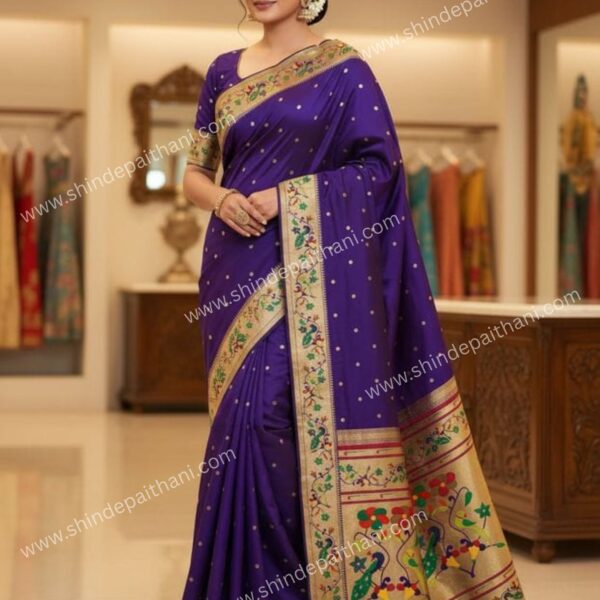 Traditional Purple Silk Paithani Saree with Golden Border, Floral Embroidered Design, Wedding Wear, Handloom Crafted, Festive Collection