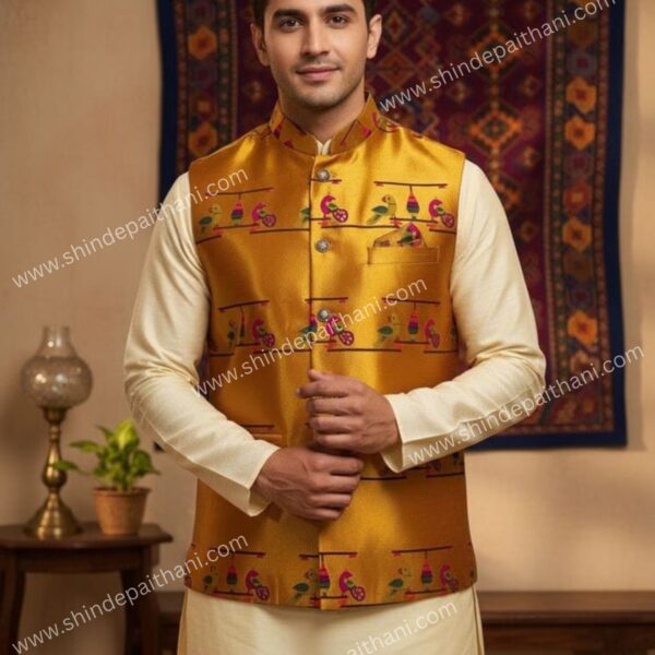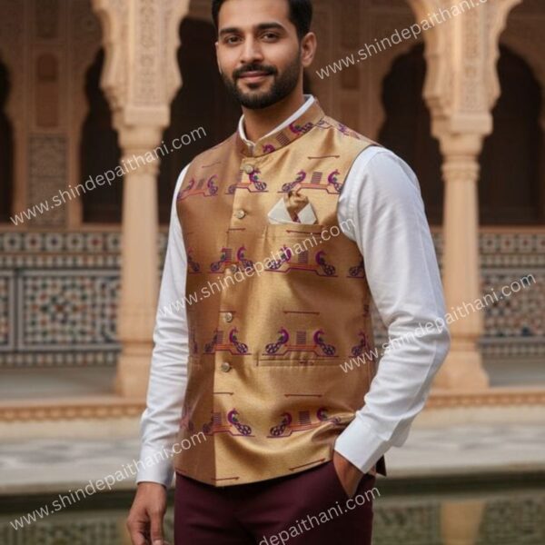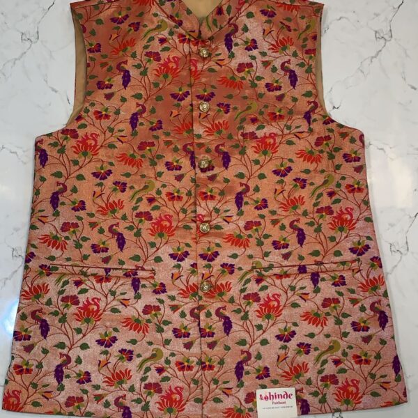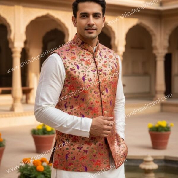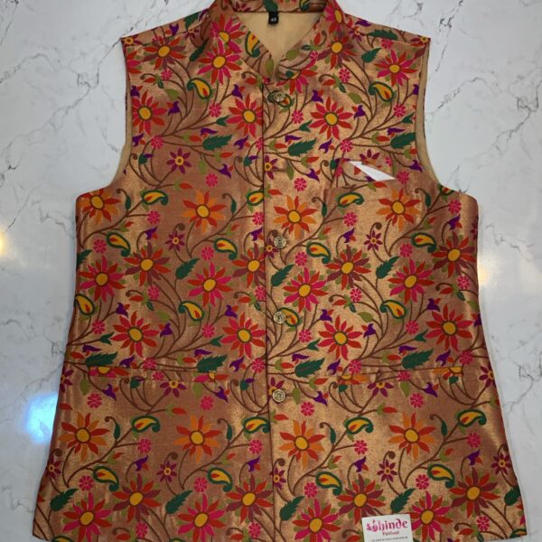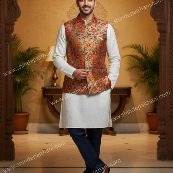 Ideal for weddings, festivals, and cultural celebrations, offering a perfect blend of traditional and contemporary aesthetics.Can be styled with various kurtas and bottom wear options for different ethnic looks and formal occasions. Intricately detailed floral embroidery and premium silk brocade fabric showcase superior artisanal workmanship
